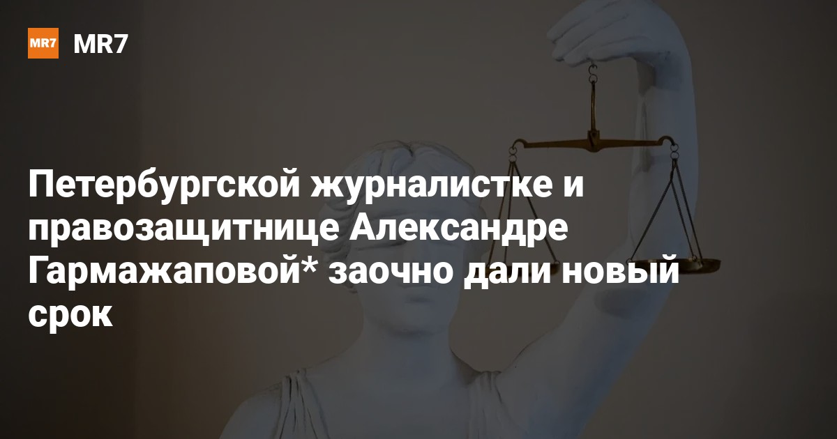 Мировой судья в Петербурге вынес очередной заочный приговор бывшей журналистке Александре Гармажаповой*, назначив ей десять месяцев лишения свободы из-за повторного несоблюдения законодательства об иноагентах. Как передает 5 марта объединенная пресс-служба городских судов, ее признали виновной по части 2 статьи 330.1 УК (уклонение от исполнения обязанностей, предусмотренных законодательством РФ об иностранных агентах).