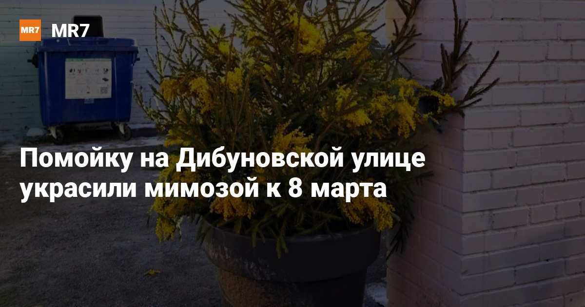 Контейнерную площадку во дворе дома № 34 по Дибуновской улице украсили ветками мимозы к 8 марта. Фотографии праздничного оформления прислал наш читатель Дмитрий.