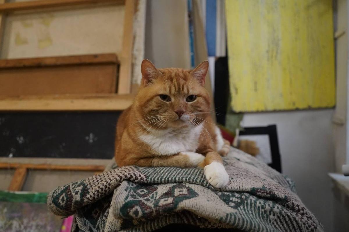 В другой мастерской можно было пообщаться с маститыми котами-художниками Сашей и Тишей и оценить живопись и графику этих упитанных животных. В рабочем кабинете им помогает куратор Евгения Коновалова.