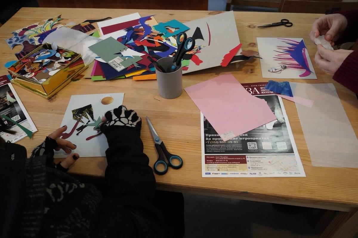 Петербургская художница Света Носова с почти 40-летним опытом участия в выставках устроила в этот день мастер-класс «Весеннее настроение», посвященный коллажу.