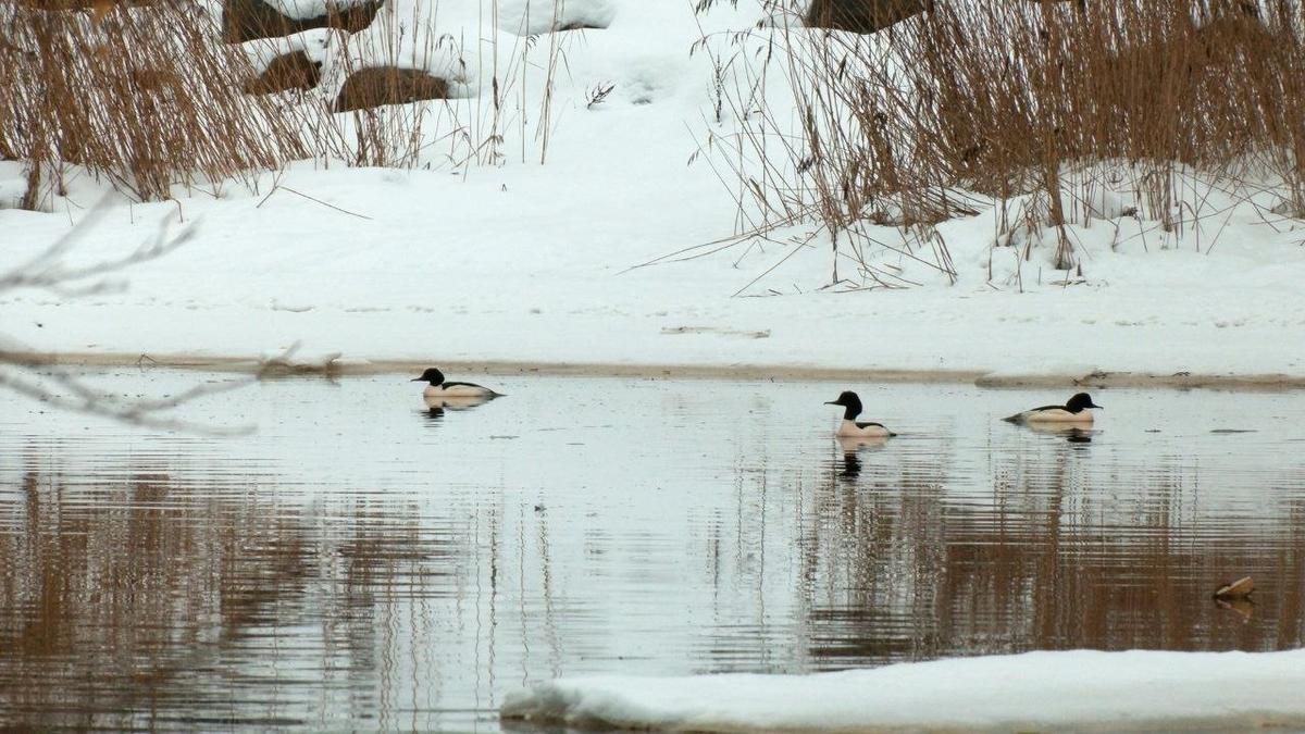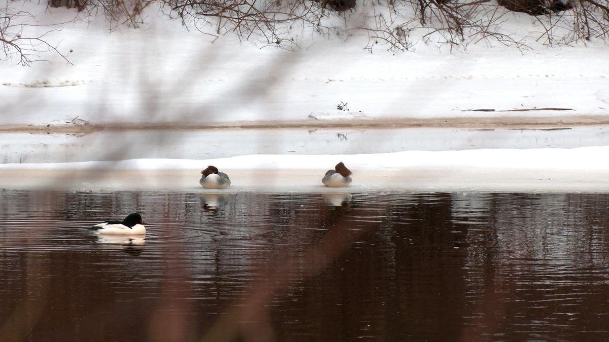 Крупные зубастые утки (крохали), замеченные в прошлом месяце в Сестрорецке, вступили в брачный период, о чем 9 марта сигнализировал в своем блоге биолог Павел Глазков.