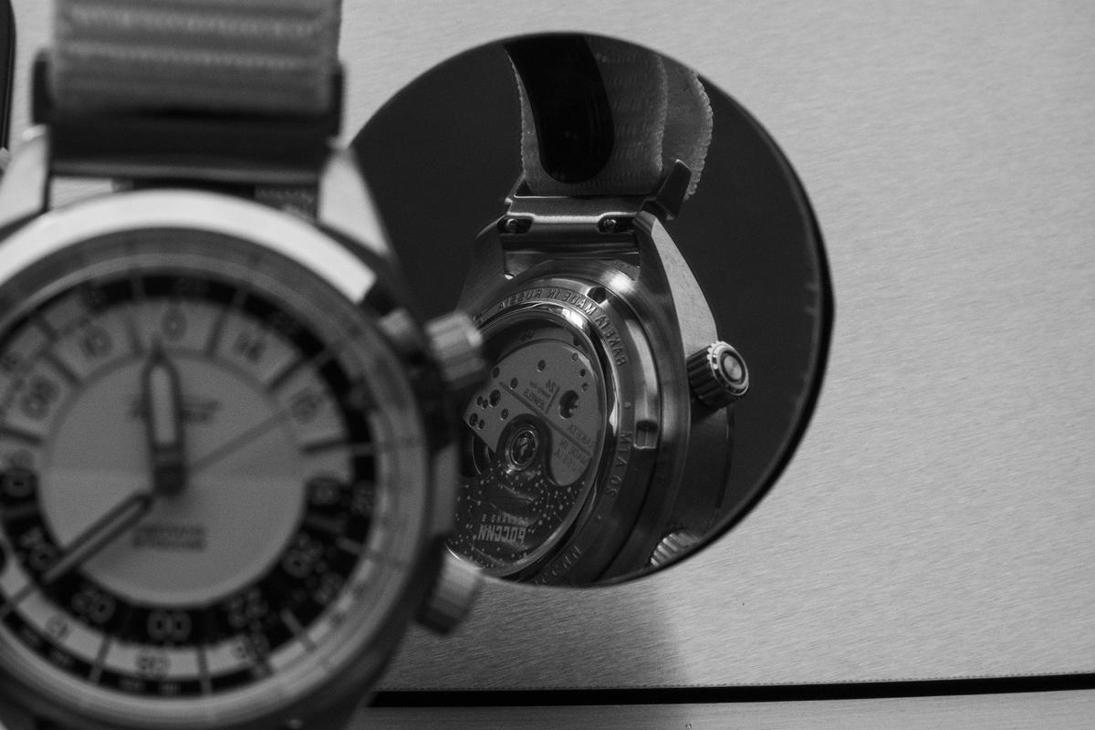 Кроме того, их циферблат поделён на шесть секций — чтобы было удобнее следить за вахтами, находясь в морских полярных экспедициях. На вращающемся ободке написаны названия морей Северного Ледовитого океана (и часовые пояса), благодаря чему можно воспользоваться функцией GMT и определить среднее время по Гринвичу. Часы могут служить компасом.