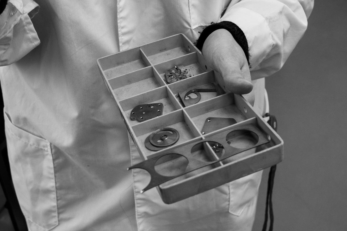 Уже перед входом в «рабочую зону» нам проводят ликбез: все составляющие часового механизма можно разделить на два типа — одни участвуют непосредственно в процессе хода часов, а другие служат крепежом.