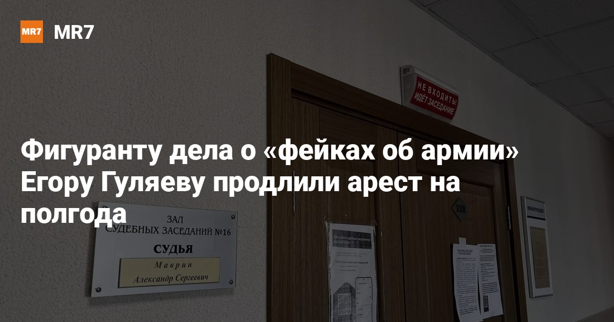 Невский районный суд в заседании 11 марта продлил содержание 35-летнего Егора Гуляева под стражей на полгода — по сентябрь 2026-го. Петербуржец находится в СИЗО с ноября 2025-го — ему вменяют пункт «д» части 2 статьи 207.3 УК (распространение заведомо ложной информации о ВС РФ по мотивам политической…ненависти; три эпизода).