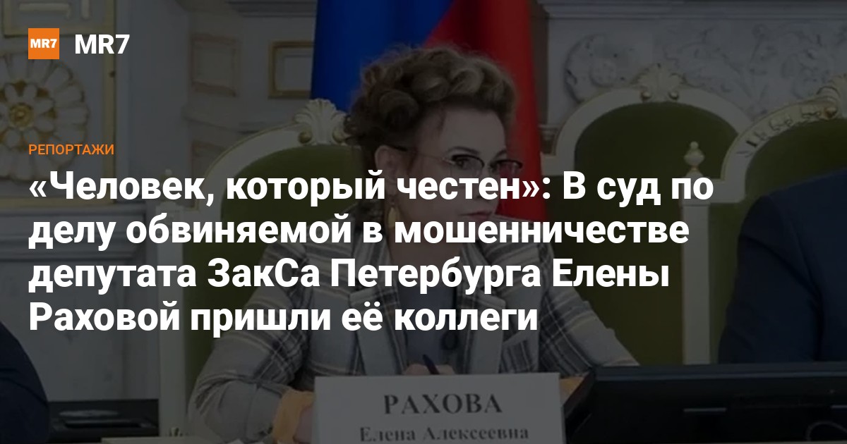 Депутата Заксобрания Петербурга, члена фракции «Единой России» Елену Рахову судят по уголовному делу о мошенничестве в особо крупном размере (часть 4 статьи 159 УК РФ). Вместе с ней на скамье подсудимых три сотрудницы школы № 619 — директор Ирина Байкова, её заместитель Екатерина Коледина и кадровик Наталья Пустильник. Следствие полагает, что с 2009 по 2023 год фигуранты фиктивно оформляли людей на работу в школу, а их зарплату забирали себе. Ущерб государству обвинение оценило примерно в 20 миллионов рублей. Сотрудницы школы свою вину признали, Елена Рахова — нет. По словам парламентария, дать первоначальные признательные показания её вынудили угрозами. Кроме того, она сообщала, что до начала судебного процесса была даже не знакома с двумя из трёх своих предполагаемых «подельниц». По данным следствия, преступная схема действовала на протяжении 14 лет (с 2009 по 2023 год). В этот период обвиняемые фиктивно оформляли граждан на работу в учебное заведение, присваивая их заработную плату. Ущерб государству превысил 20 миллионов рублей. В начале предполагаемой аферы Елена Рахова занимала пост замглавы администрации Калининского района, а в 2013 году стала депутатом ЗакСа. Она единственная из подсудимых, кто свою вину не признал.