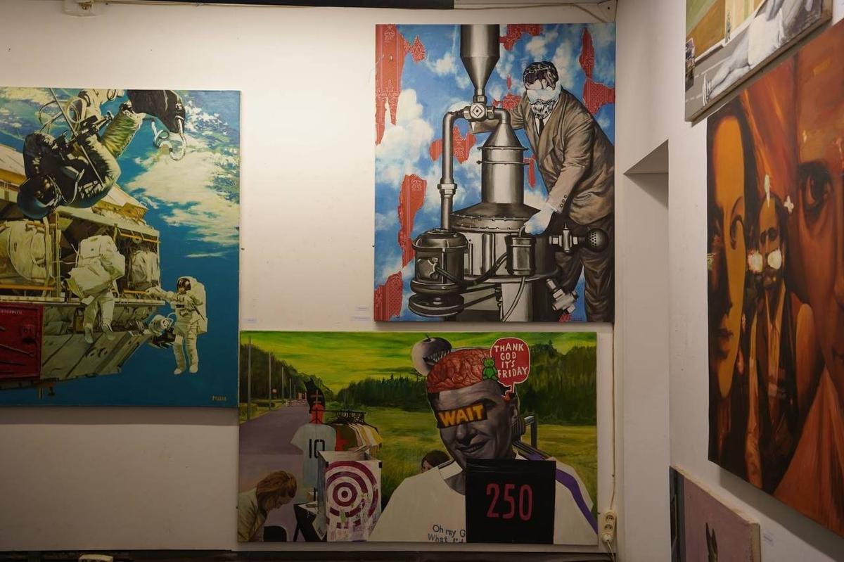 Название выставки-ретроспективы его работ — «Цивилизация». Живописью дело не ограничивается: по всему залу расставлены инсталляции. Собственно, известность автору принесла именно работа с пространством и пластическими формами: в 2005 году он поместил 40 пенопластовых пингвинов на фасад музея Арктики и Антарктики рядом с Владимирской площадью, который тогда находился на реставрации.