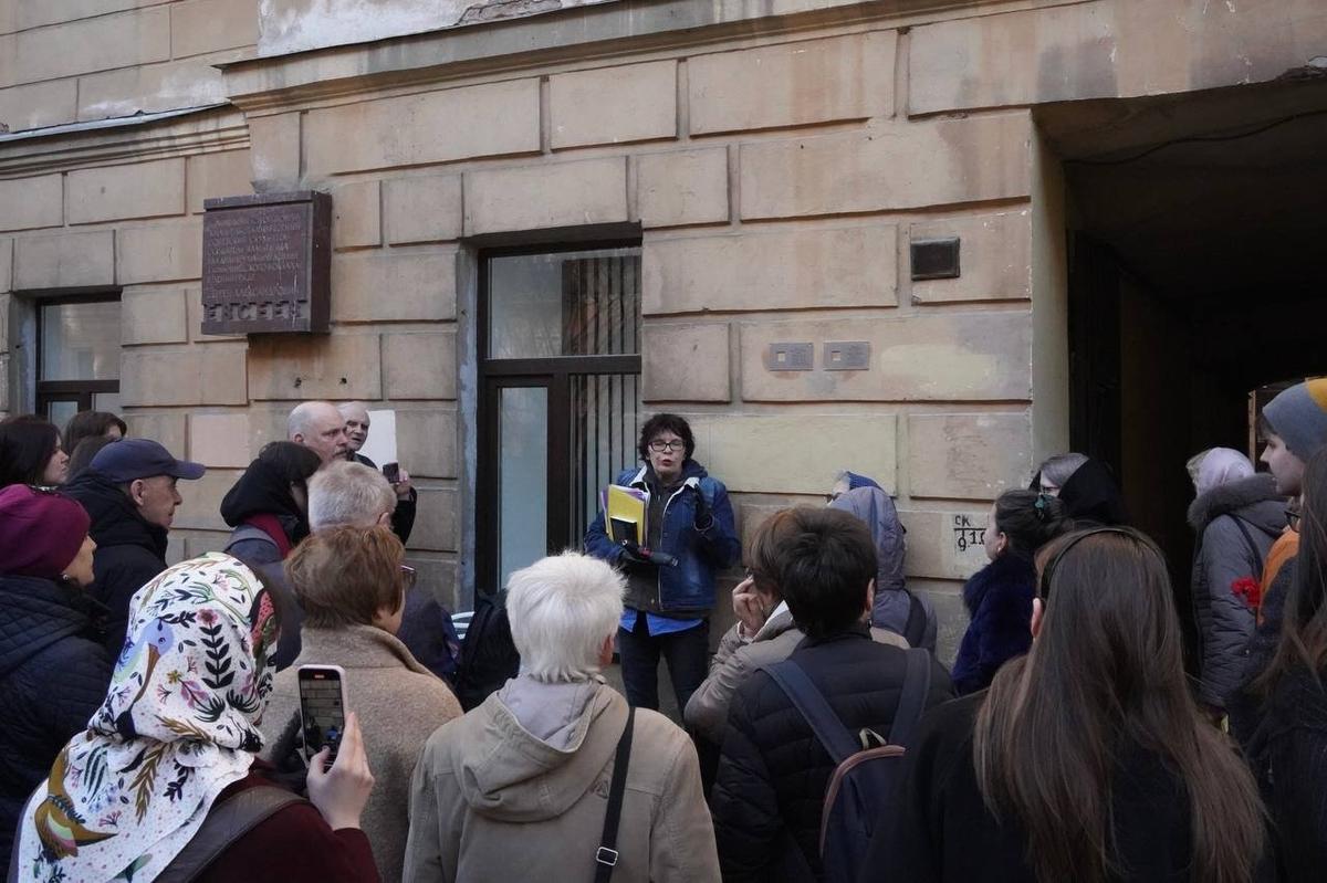 После торжественной церемонии установки новой таблички волонтёры «Последнего адреса» заменили на металлические дубликаты две картонные копии памятных знаков на фасаде дома № 21 по Английскому проспекту.