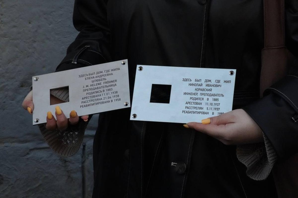 По этому адресу ранее была сорвана табличка в память о преподавательнице немецкого языка Елене Штюбель, обвиненной по статье «измена родине» и приговоренной к расстрелу в 1938 году. Она была реабилитирована в 1958 году.