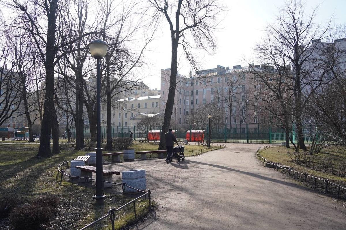 Несмотря на введенные ограничения, в Юсуповском саду жители продолжают гулять. По наблюдениям нашего корреспондента, на территории находятся не только посетители, но и охрана, которая также перемещается по парку.