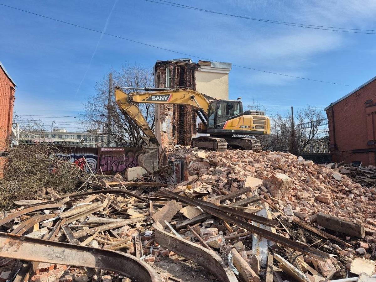 В Петербурге 23 марта начали сносить Кокоревские склады. Экскаватор ломает одно из зданий комплекса, которое находится по адресу Лиговский проспект, 50, литера В, сообщили сегодня в telegram-канале градозащиты «SOS СПб СНОС».