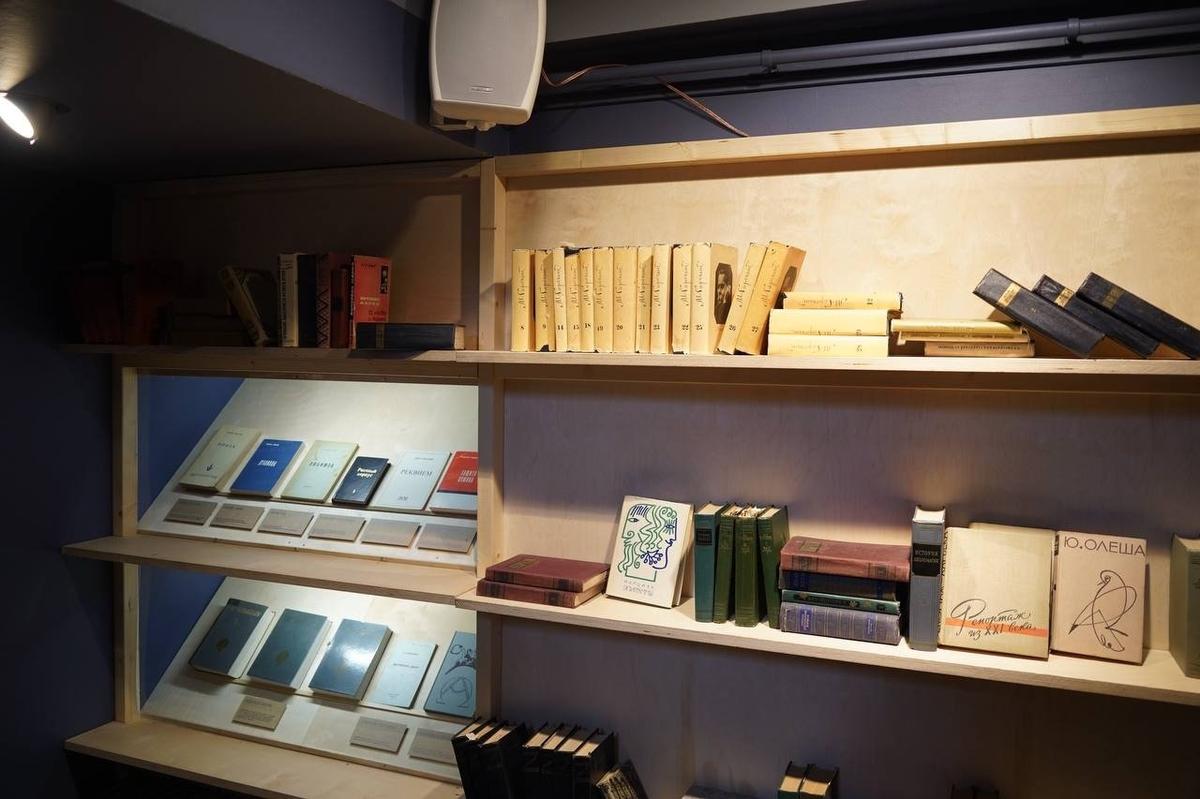 Выше на пролёт — книжный шкаф. В нём всё, что и должно быть в библиотеке семьи советских интеллигентов — собрания сочинений Горького, Тургенева, Некрасова. Вот только «Защита Лужина» Набокова — явный самиздат, «оттепель» — «оттепелью», но нобелевский лауреат иными путями на книжную полку в шестидесятые ещё не попадал.