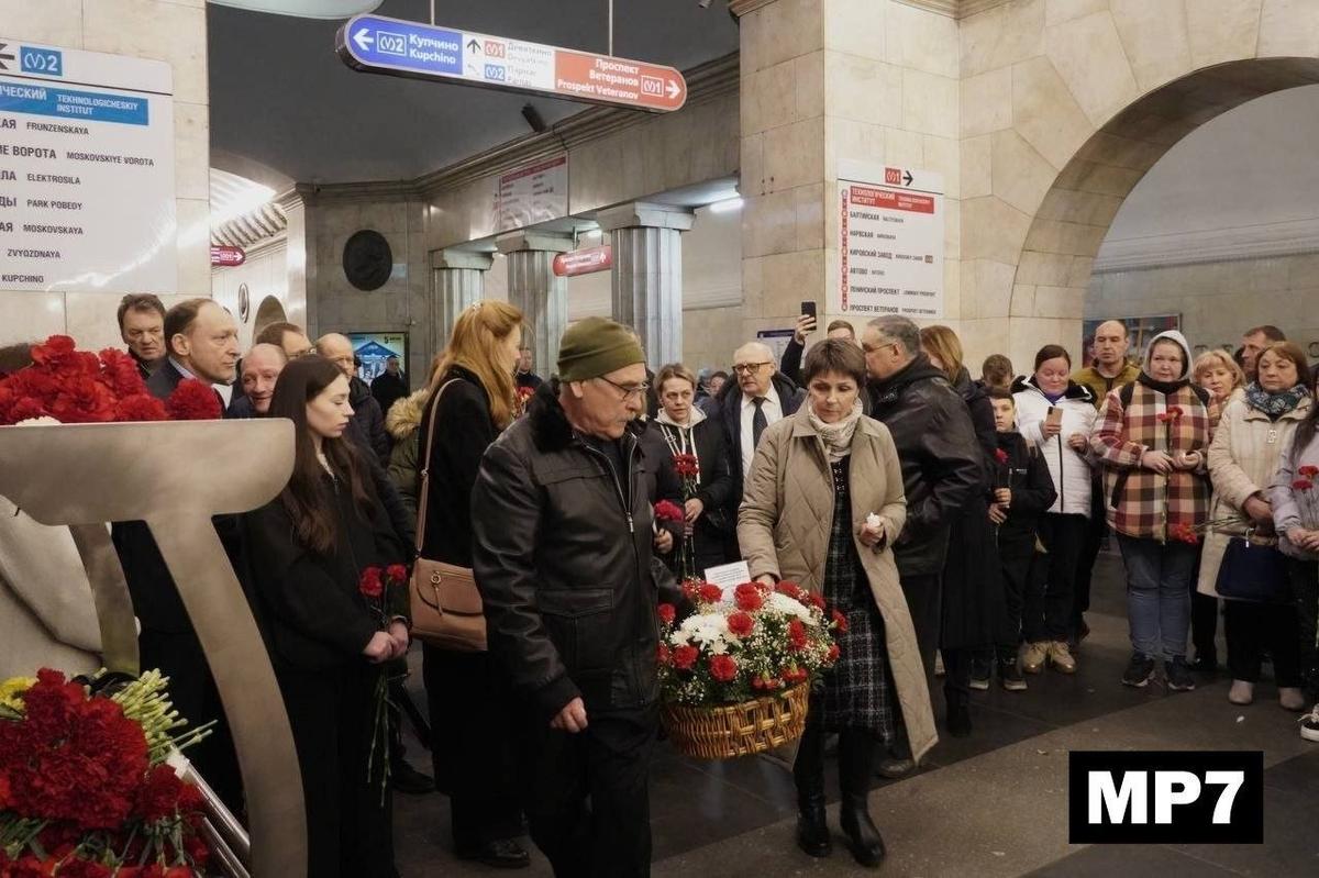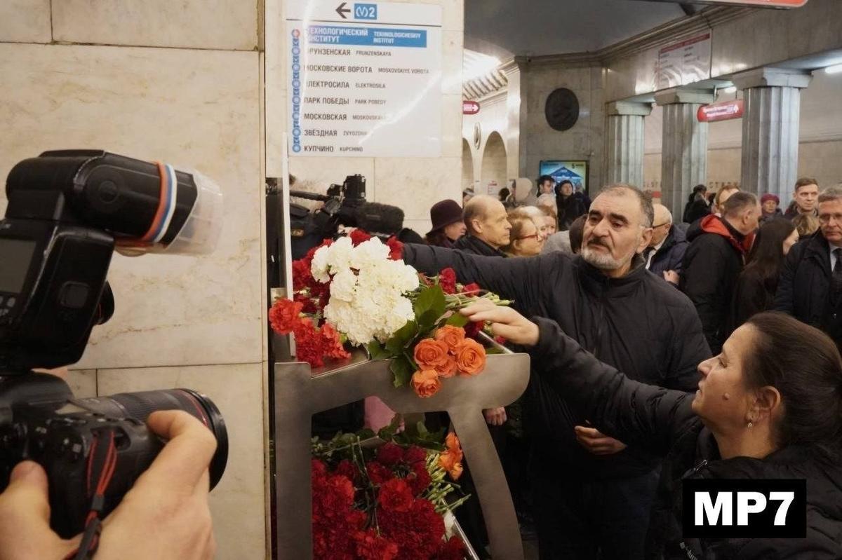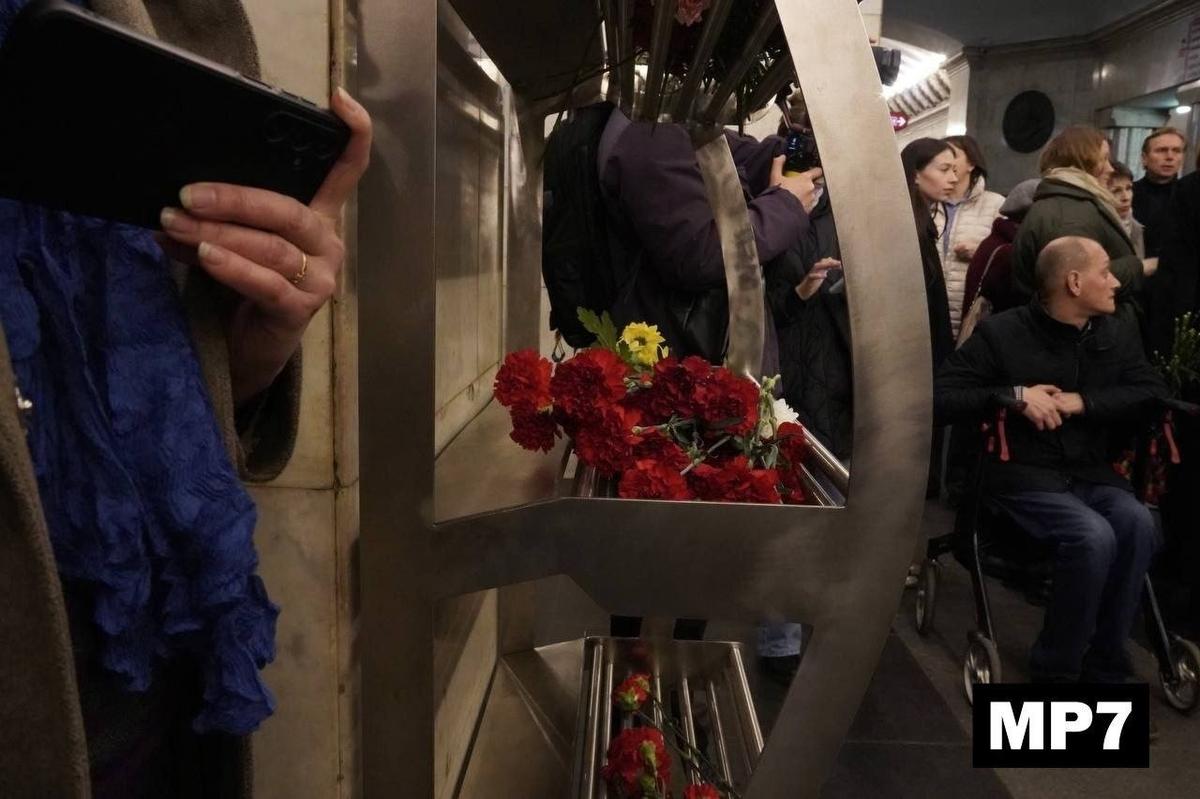 Петербуржцы с раннего утра приносят цветы к мемориальной табличке на станции «Технологический институт» в память о жертвах теракта, произошедшего 3 апреля 2017 года. Тогда на перегоне между станциями «Сенная площадь» и «Технологический институт» в 14:33 при взрыве в вагоне поезда погибли 15 пассажиров и смертник Акбаржон Джалилов, 103 человека получили ранения.