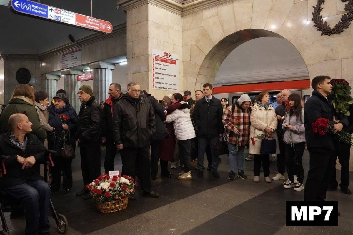 Сегодня на станции собрались друзья и родственники погибших, а также пострадавшие при взрыве пассажиры. Табличка, к которой петербуржцы возлагали цветы, была установлена в 2020 году.