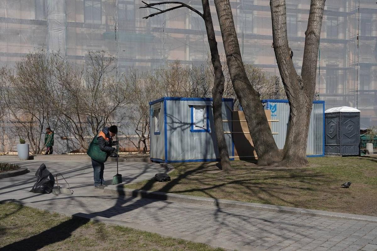 Апрель в Петербурге — месяц уборки после зимы. Основной субботник намечен на 25-е число. А пока коммунальные службы подметают, моют и красят.