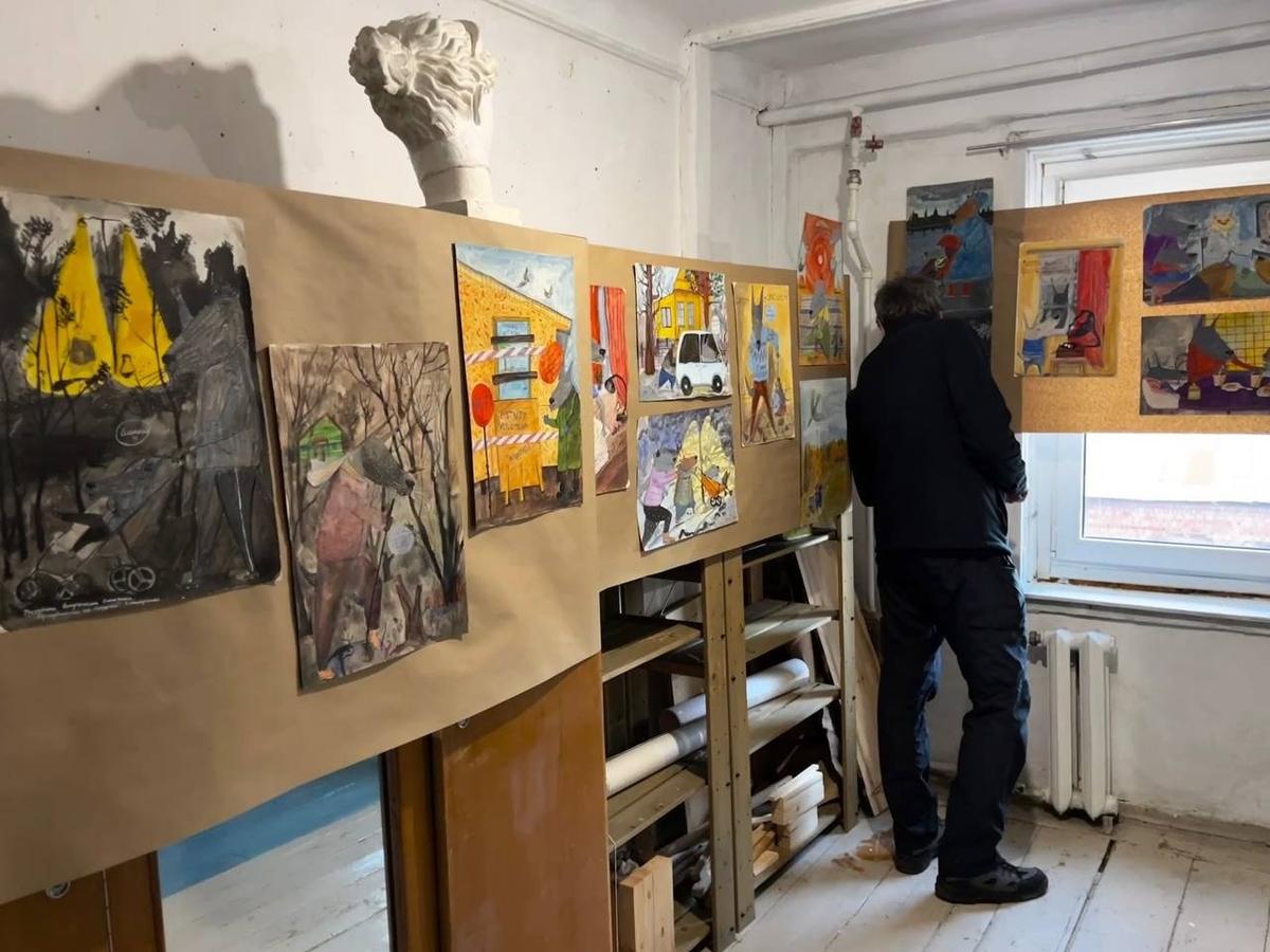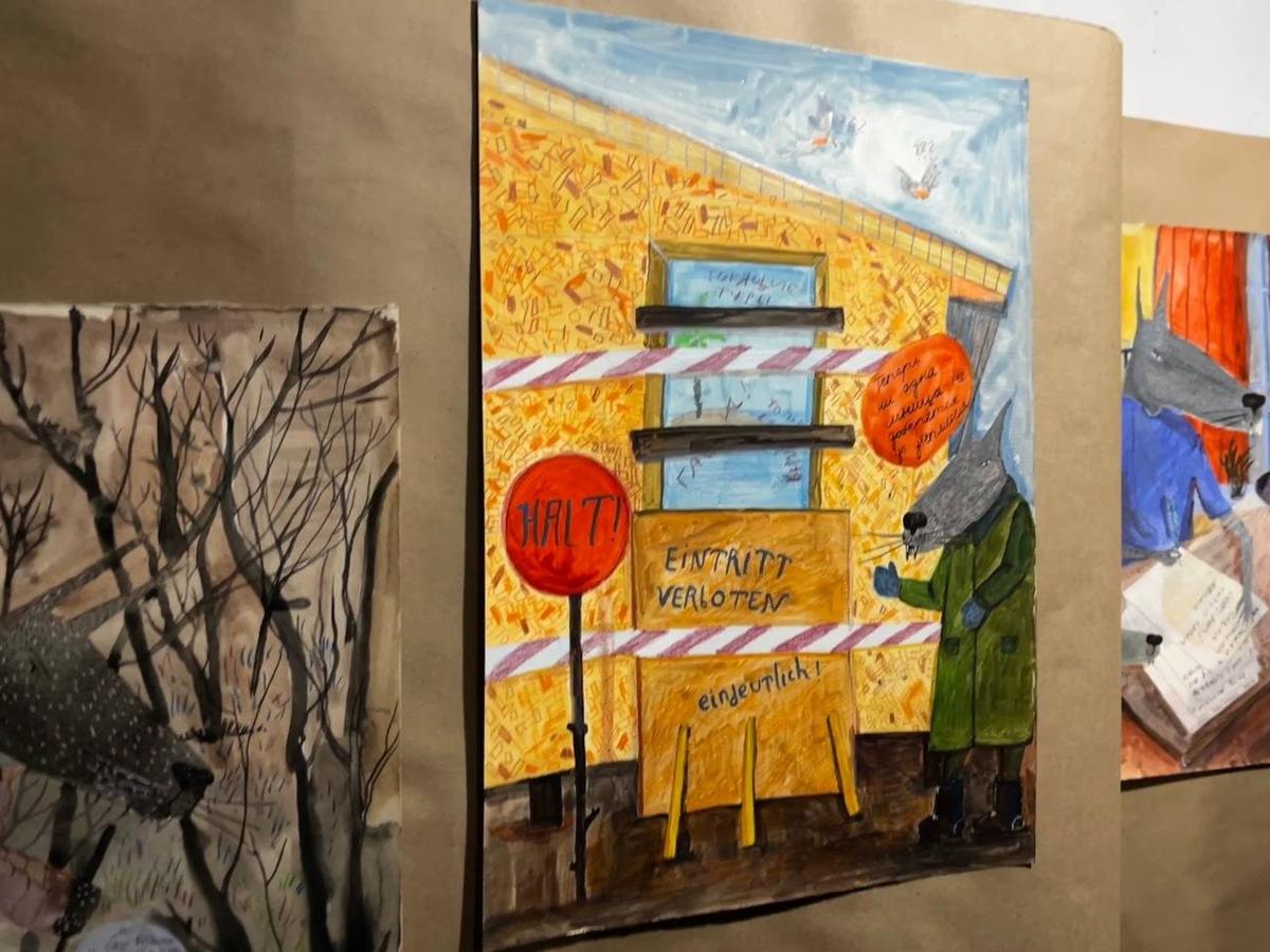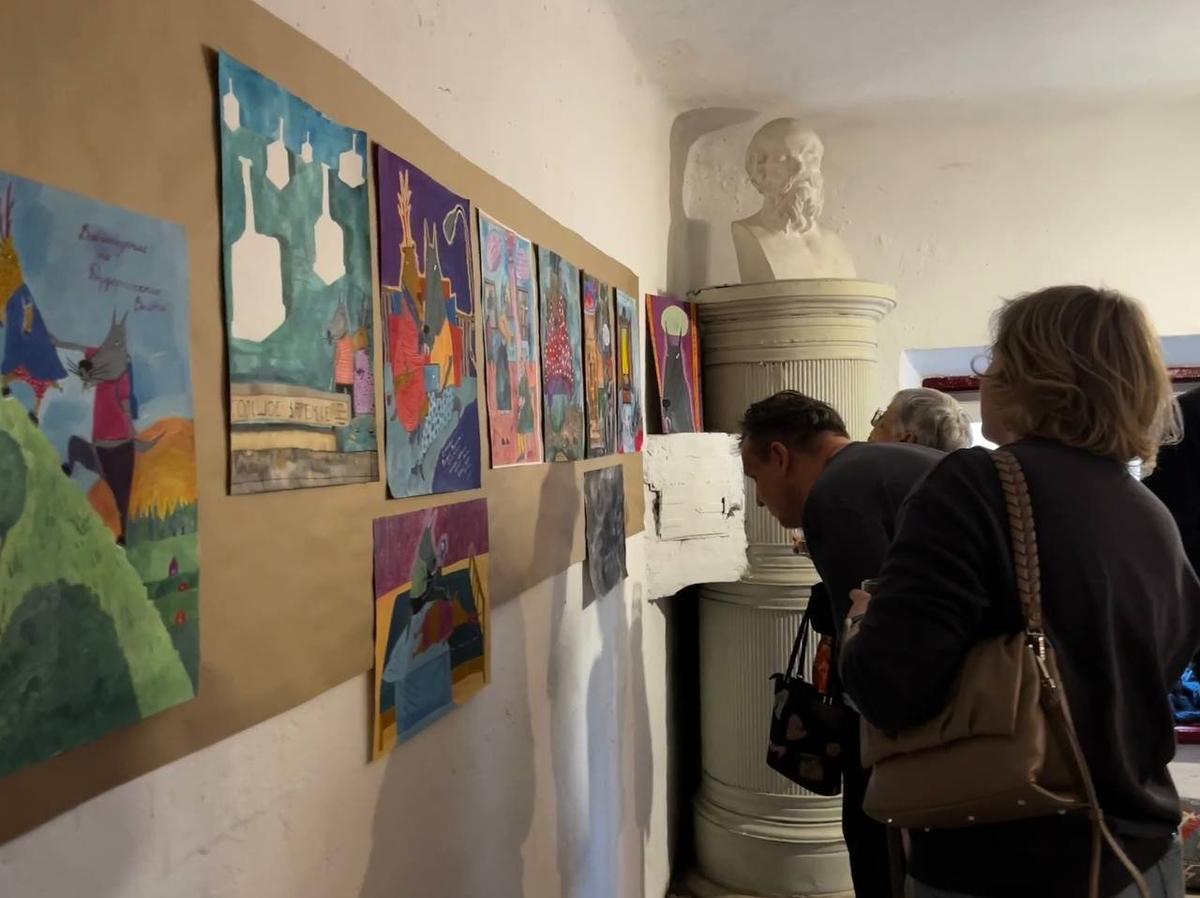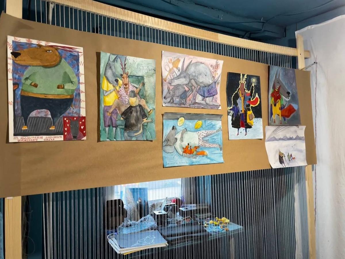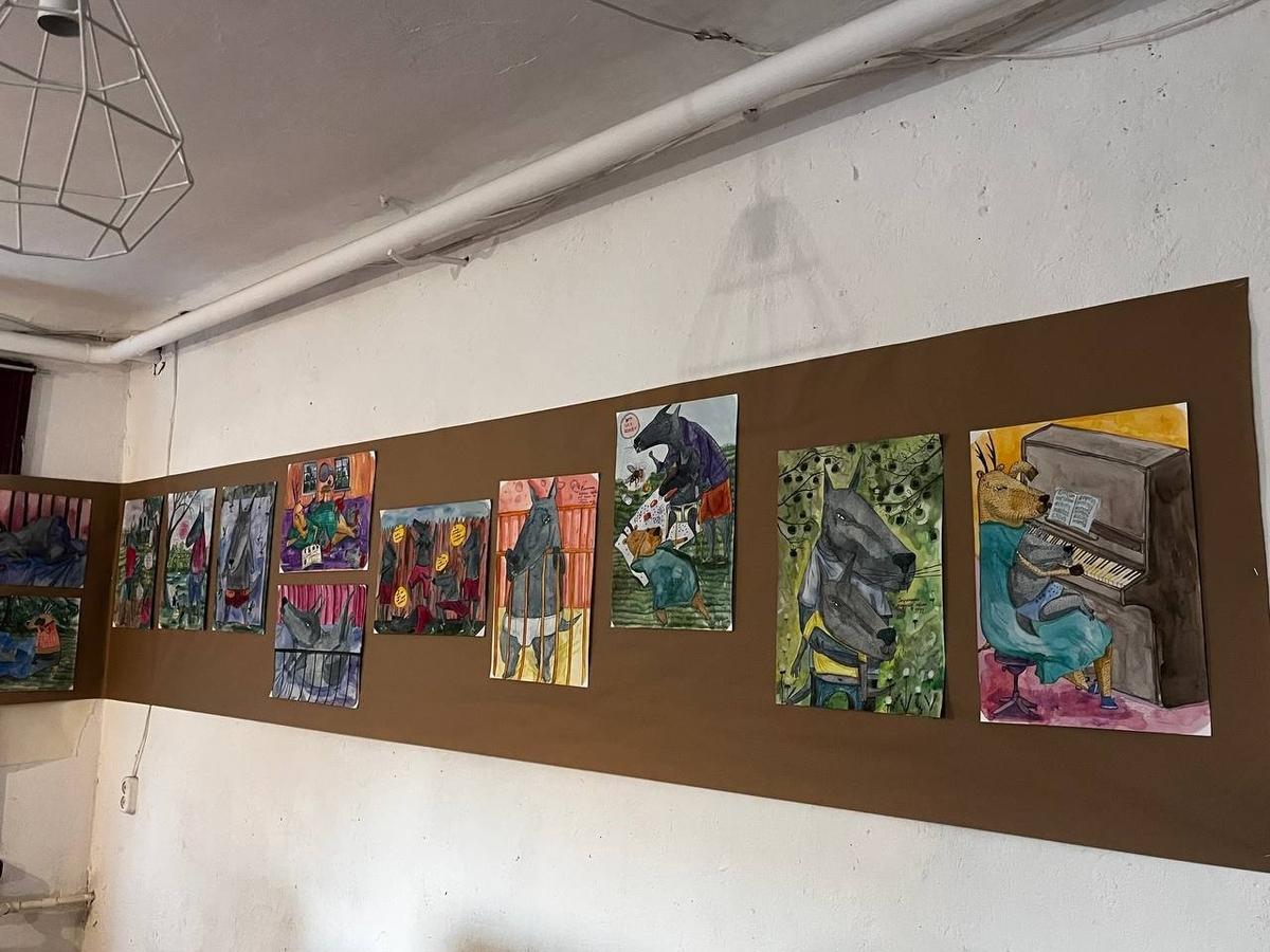 Экспозиция «Счастье из подручных материалов» открылась вечером 10 апреля в мастерской на улице Черняховского, 27. Автор — петербургская художница Соня Акимова. В основе — рисунки о самой Соне, её детях и муже Михаиле, которого в ноябре 2025 года из дома забрали под стражу.