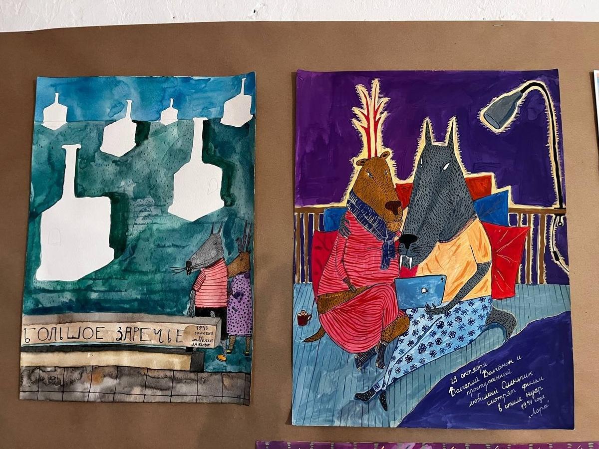 На выставке рисунки, которые Соня создавала с 2022-го — в тот год они только познакомились с Михаилом.