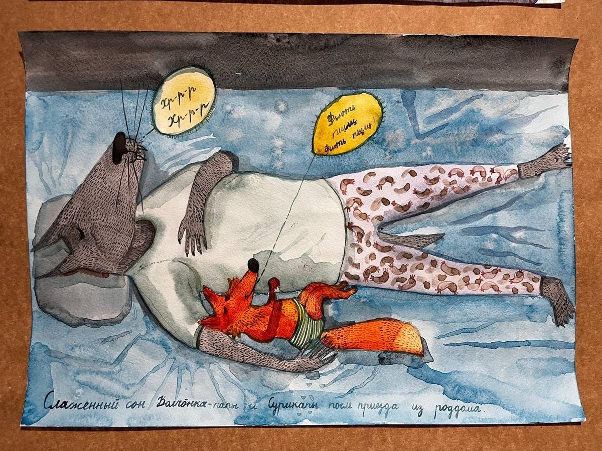 В рисунках (изначально это был личный дневник) художницы вся её семья предстаёт в образе животных. Михаил — Волчонок-старший, Соня — оленёнок, их двухлетний сын Кирилл — Волчонок-младший, а девятимесячная Кристина София — лисёнок, которого родители называют «божественной Сурикапой».