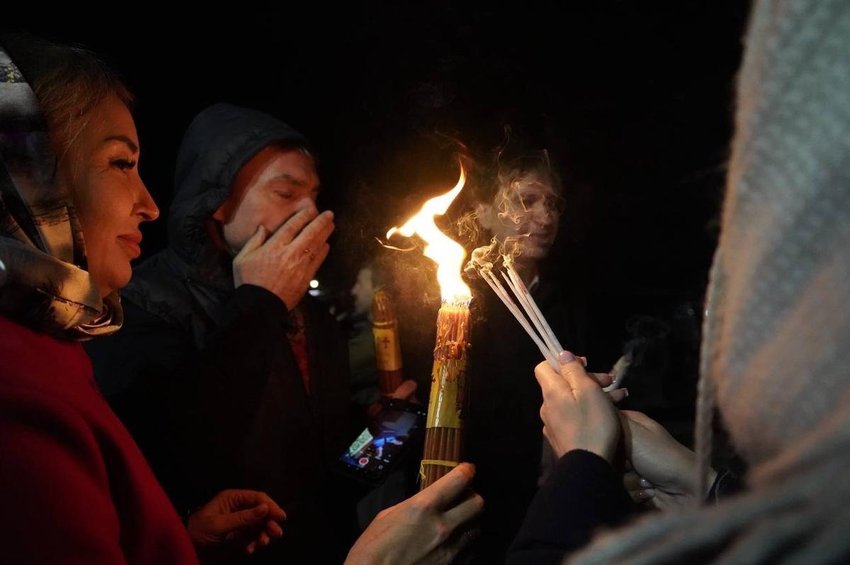 Частичку благодатного огня из храма Гроба Господня в Иерусалиме доставили в петербургский аэропорт Пулково 12 апреля.