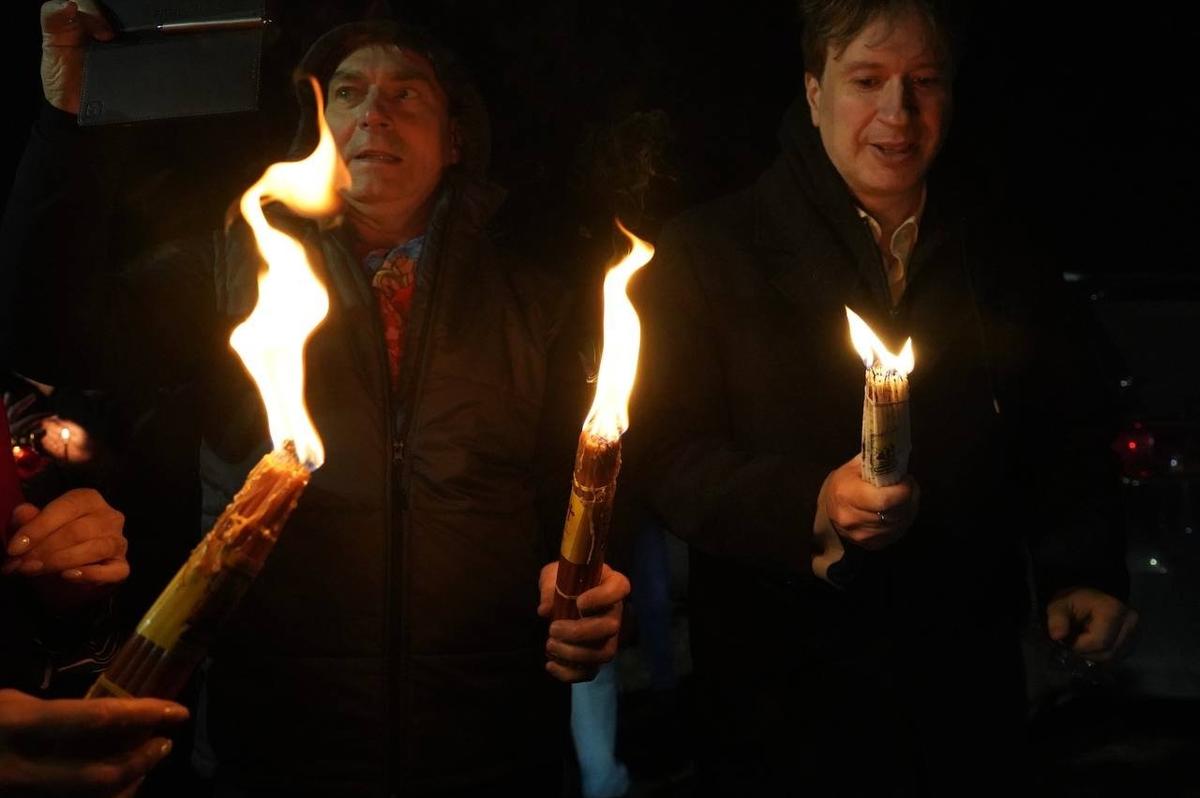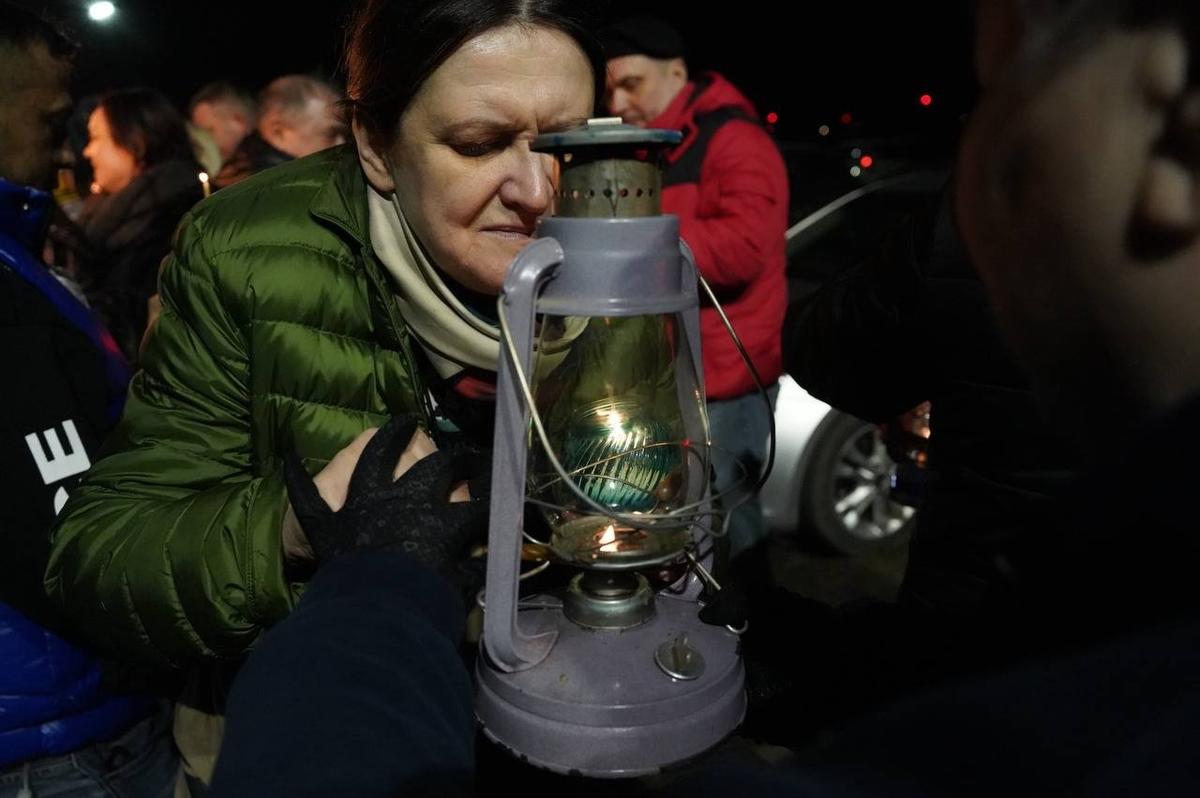 В Петербург из Москвы один из главных символов христианской веры привезли депутат Заксобрания Ленобласти Сергей Коняев и руководитель Фонда в Петербурге Игорь Влащенко — самолёт приземлился в Пулково в 2:48. Через 30 минут на парковке у Пулковского шоссе его «раздали» всем желающим.