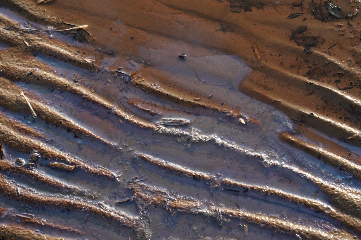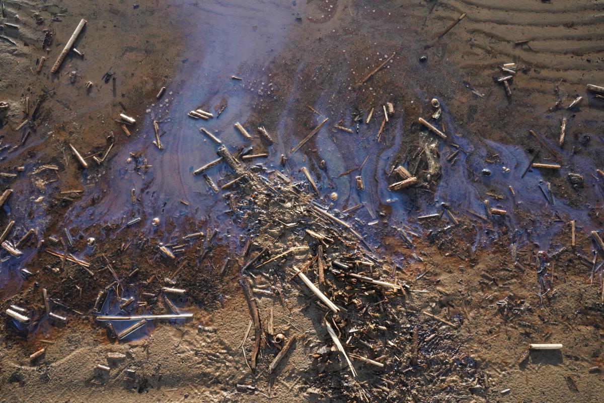 Береговая линия Финского залива в Сестрорецке покрылась неприятными чёрными отложениями. обратил внимание фотограф МР7. Всё можно было бы списать на обычные водоросли, но плёнка имеет химический запах — мазута или машинного масла, если растереть её в руках. К тому же от неё расходятся характерные радужные разводы по воде.