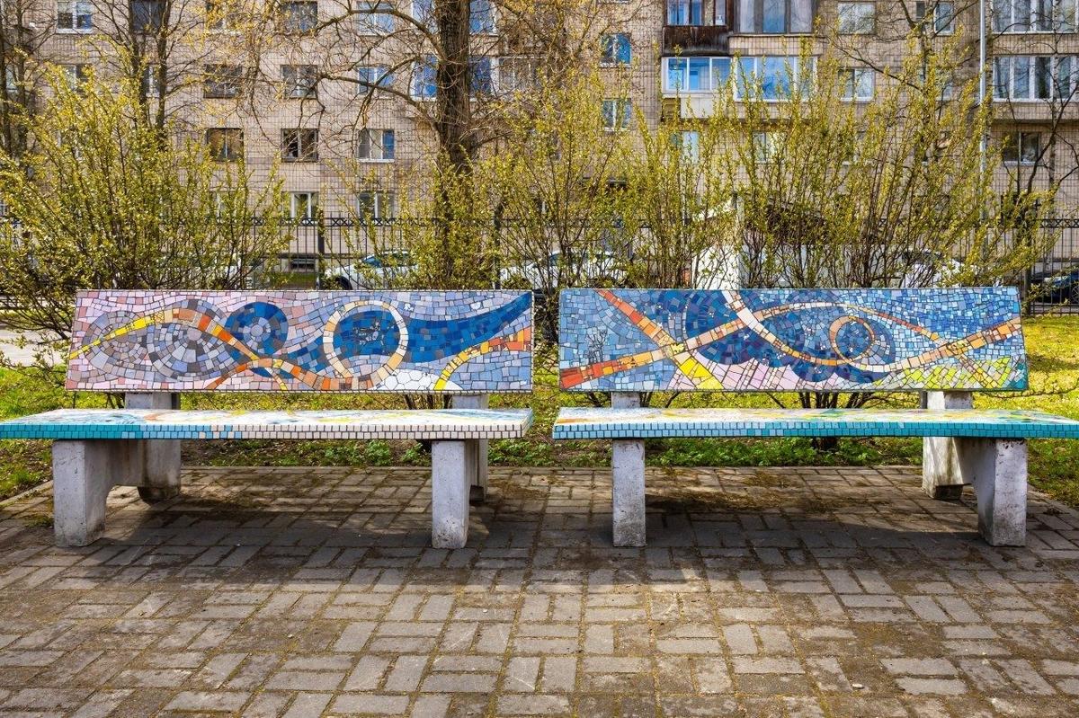 Во дворе детской №1 в Василеостровском районе на улице Кораблестроителей, 21, корпус 2 23 апреля открыли две мозаичных «читающих» скамейки. Они были созданы по инициативе школы мозаики «Сад Гранат» и при участии библиотечной системы Василеостровского района.