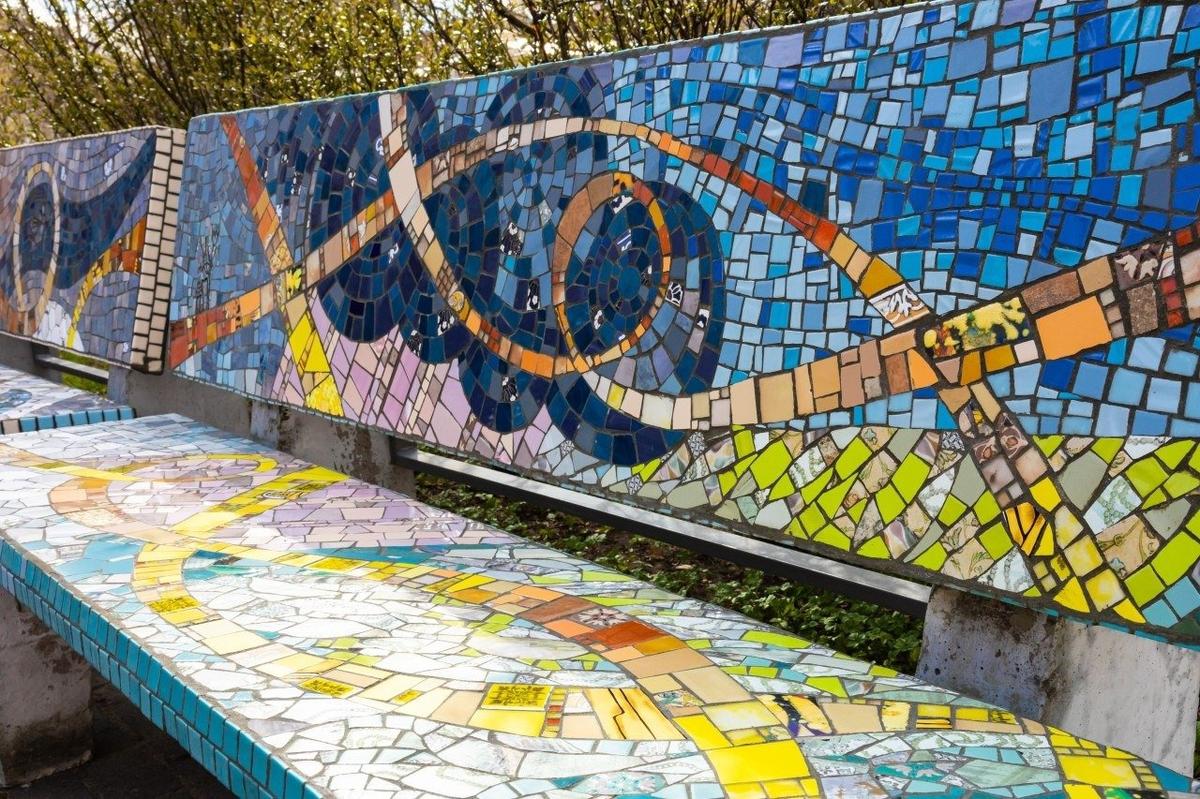 «Этот проект родился из вдохновения опытом итальянских городских мозаичных проектов. Италия — это родина мозаики, их там очень много. Хотелось бы, чтобы наши скамейки со временем составили интересный туристический маршрут по Васильевскому острову», — рассказала автор проекта Яна Новикова. Первые две скамейки объединены темой «Весна».