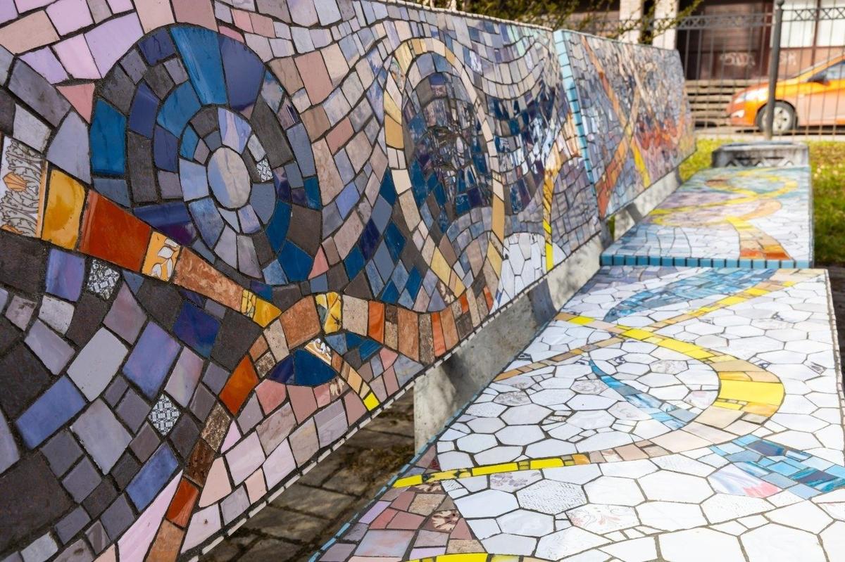 Обычные дворовые скамейки получили новую жизнь: они были художественно отремонтированы и превратились в мозаичные композиции. Для мозаики использовали осколки керамики, смальты и керамогранита. Специально для «Города глазами птиц» детская писательница Мария Сидлер создала серию авторских рассказов о персонажах, изображённых на мозаичных скамейках. Рядом с объектами скоро будут установлены информационные стенды в виде книг: с помощью QR-кода посетители получат доступ к этим историям.