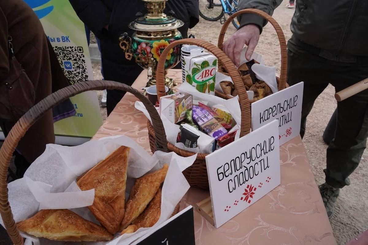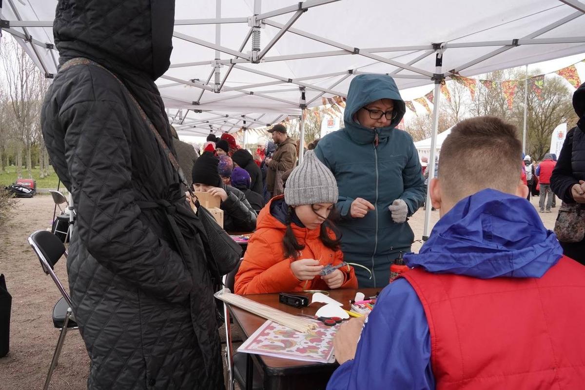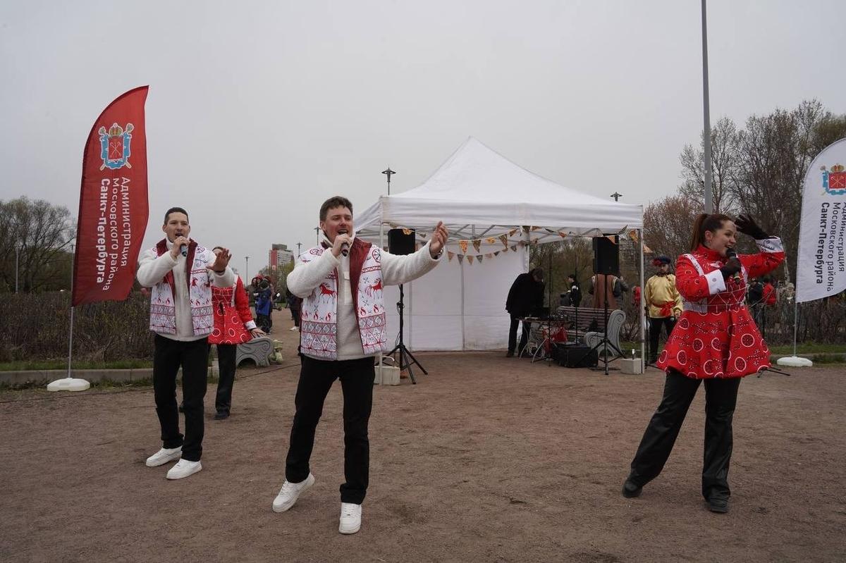 Также на территории парка развернули полевую кухню, пели народные песни. Помимо этого участникам предложили проголосовать за проекты благоустройства Московского района.